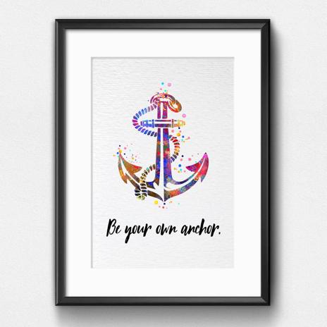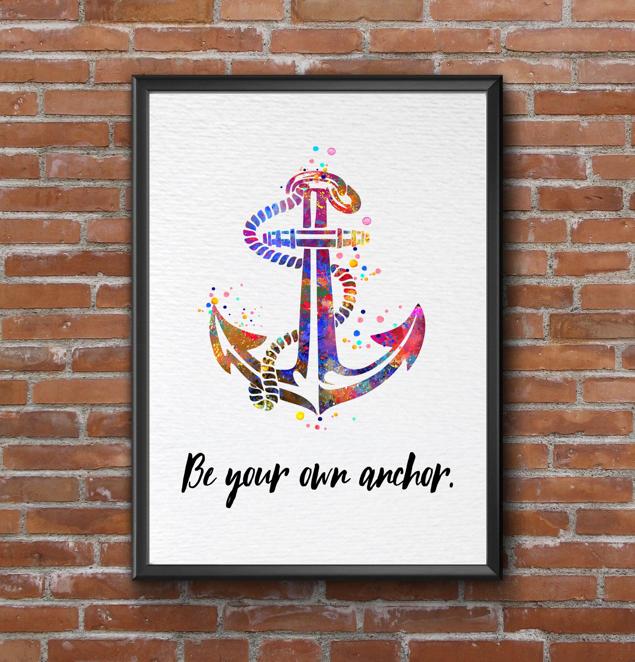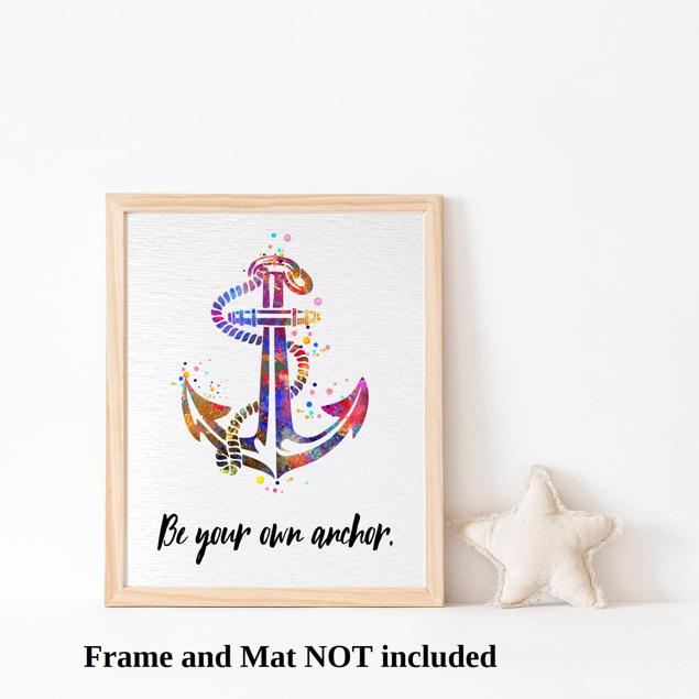 Dignovel Studios Unframed Anchor Nautical Coastal Living Motivational Inspirational Quote Be Your Own Anchor Life Wisdom Watercolor Art Print Wall Art Poster Home Decor Hanging DN788