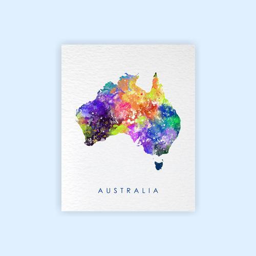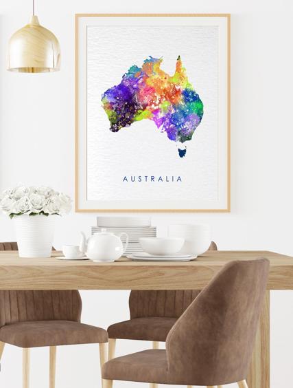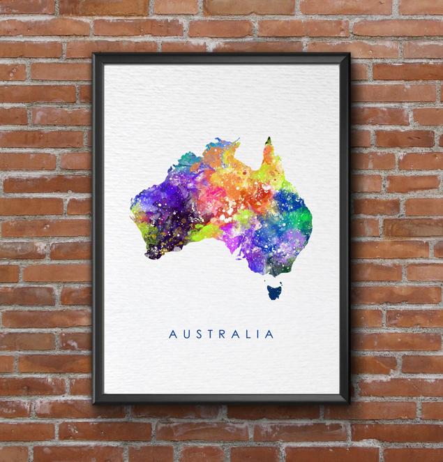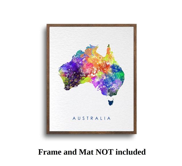 Dignovel Studios Unframed Australia Map Watercolor illustrations Print Poster Giclee Decor Home Decor world map print N205 Watercolor Art Print Wall Art Poster Home Decor Hanging DN205