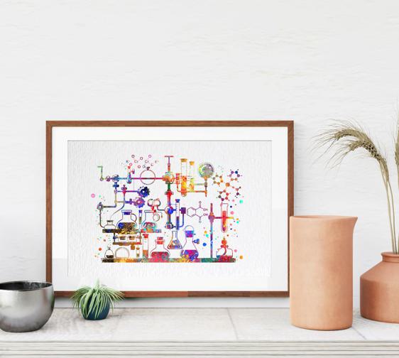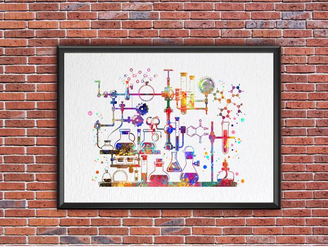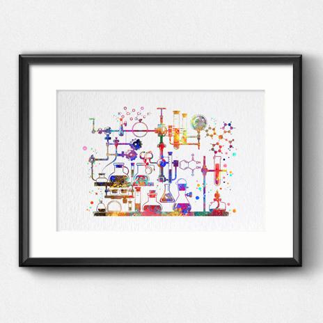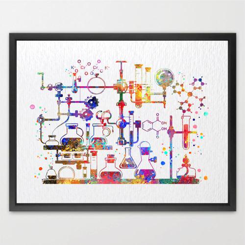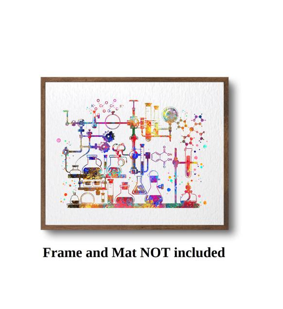 Dignovel Studios Unframed Chemistry Laboratory Abstract Watercolor Art Print Medical Art Microbiology Scientific Tools Watercolor Art Print Wall Art Poster Home Decor Hanging DN893