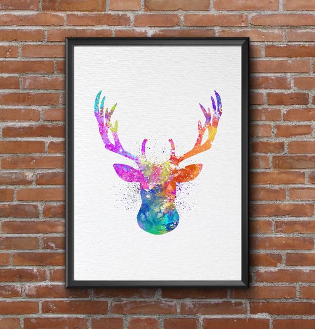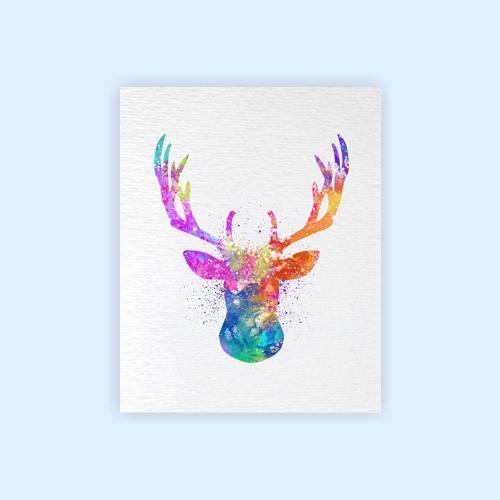 Dignovel Studios Unframed Deer Stag Antler Watercolor illustration Print Poster Nursery Decor Print Kids N190 Watercolor Art Print Wall Art Poster Home Decor Hanging DN190