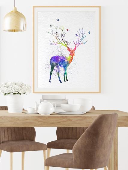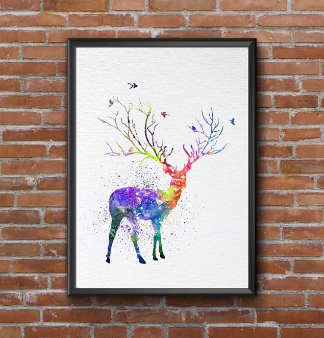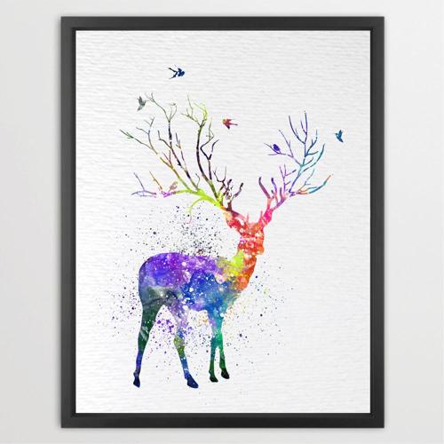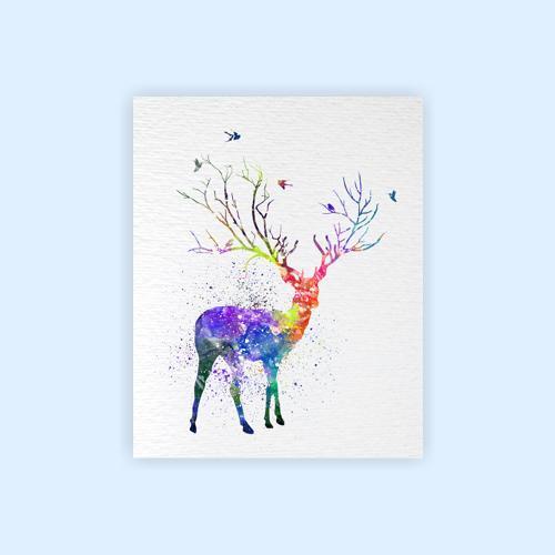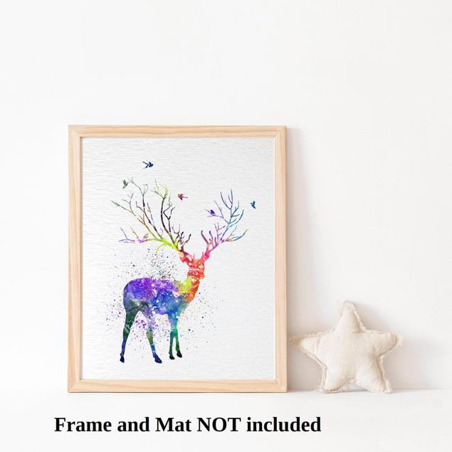 Dignovel Studios Unframed Deer Tree Horn Watercolor illustration Print Poster Nursery Decor Print Kids N198 Watercolor Art Print Wall Art Poster Home Decor Hanging DN198
