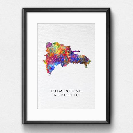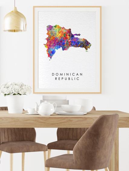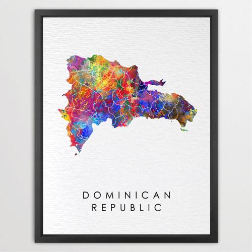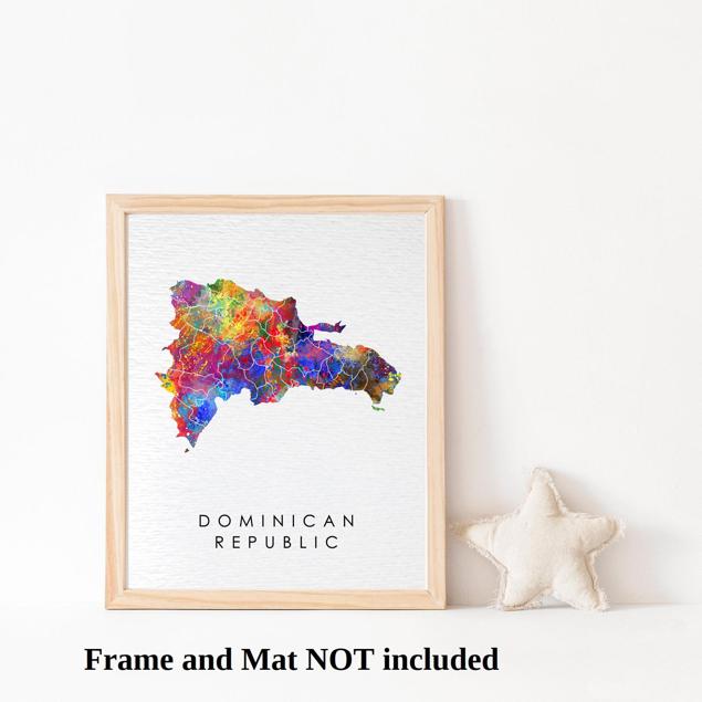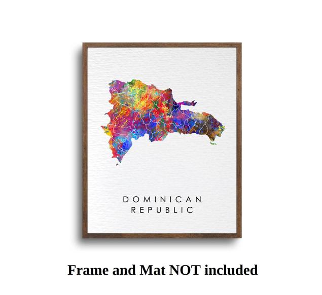 Dignovel Studios Unframed Dominican Republic Map Caribbean Nation Tourist Motherland Homeland Country Map World Map Watercolor Art Print Wall Art Poster Home Decor Hanging DN802