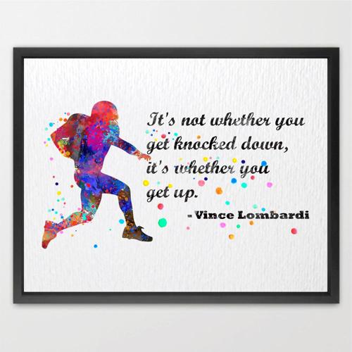 Dignovel Studios Unframed Football Training It’s not Whether You Get Knocked Down Quotes Watercolor Art Print Wall Art Poster Home Decor Hanging DN556