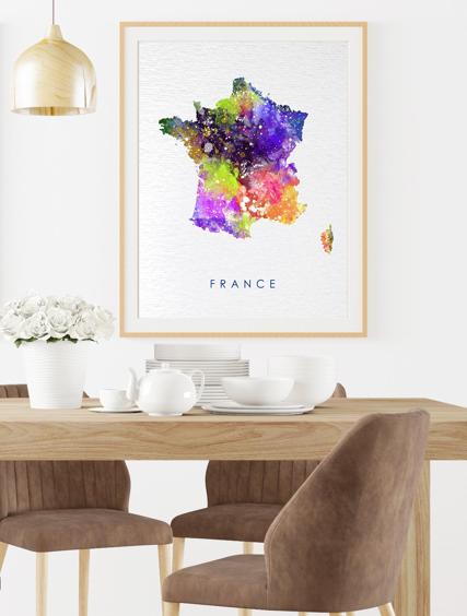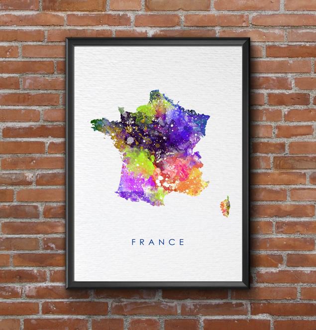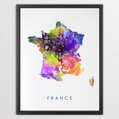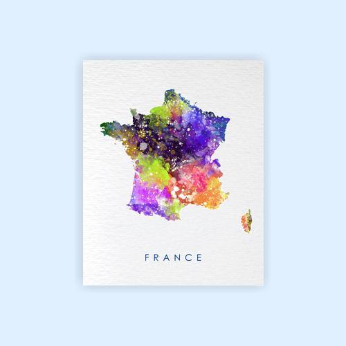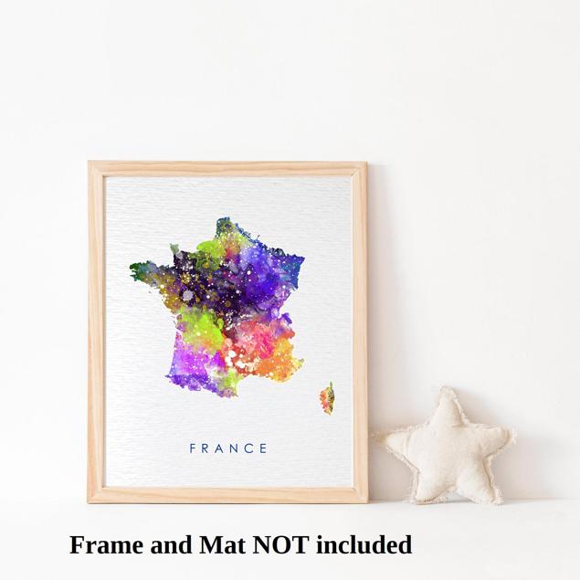 Dignovel Studios Unframed France Map Watercolor illustrations Print Poster Giclee Decor Home Decor world map print N206 Watercolor Art Print Wall Art Poster Home Decor Hanging DN206