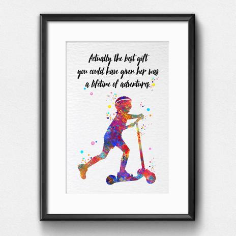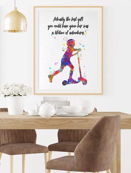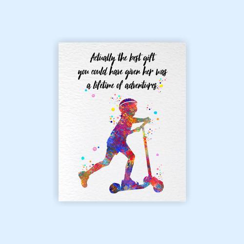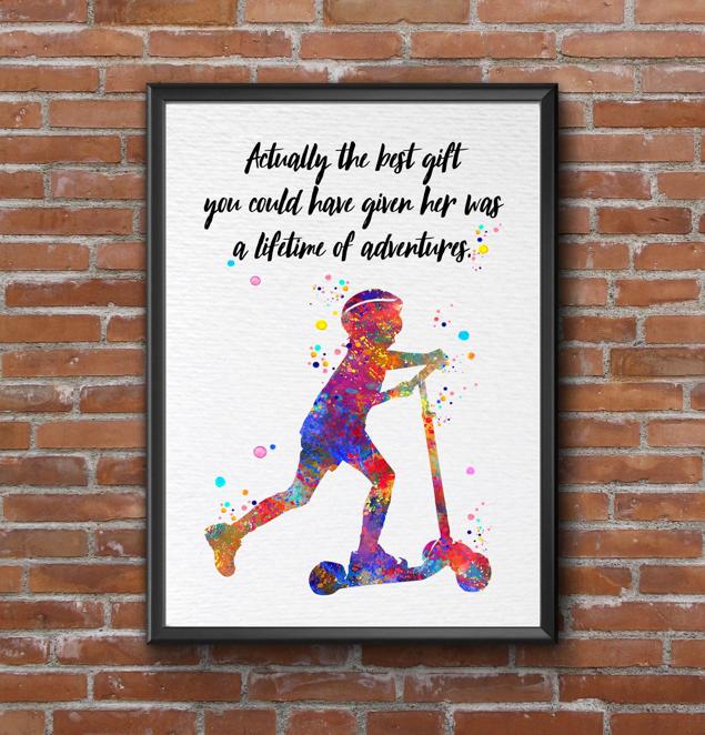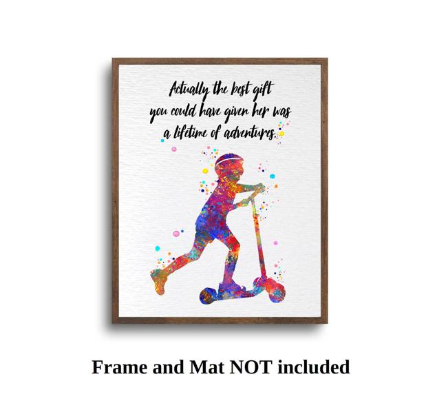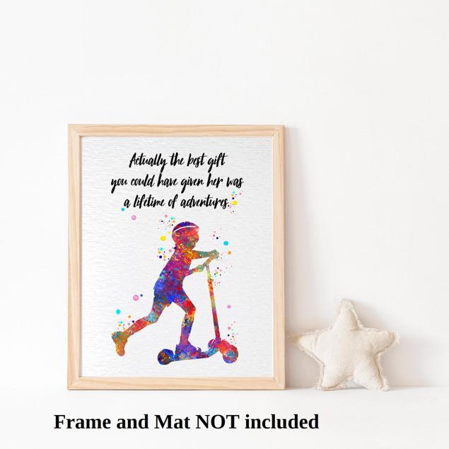 Dignovel Studios Unframed Girl Scooter Riding Outdoor Sports A Lifetime of Adventures Inspirational Quotes Words Saying Wisdom Watercolor Art Print Wall Art Poster Home Decor Hanging DN559