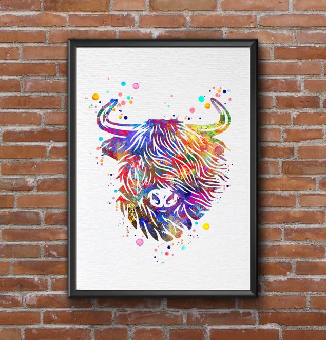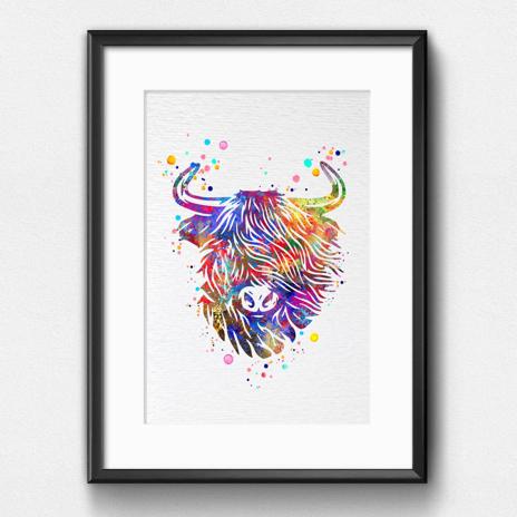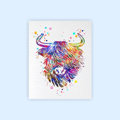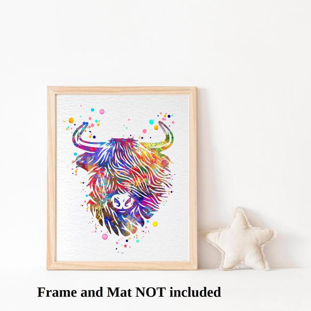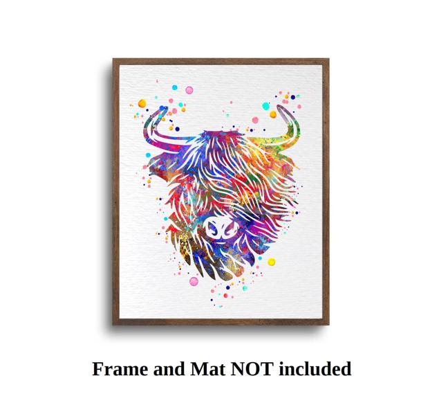 Dignovel Studios Unframed Highland Cow Cattle Scottish Highland Cow Farm Animal Nature Peace Love Watercolor Art Print Wall Art Poster Home Decor Hanging DN790