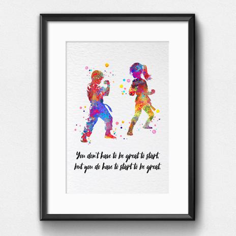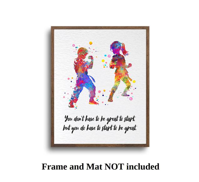 Dignovel Studios Unframed Karate Boy Girl Martial Arts Fighting Sports Inspirational Quotes Watercolor Art Print Wall Art Poster Home Decor Hanging DN816