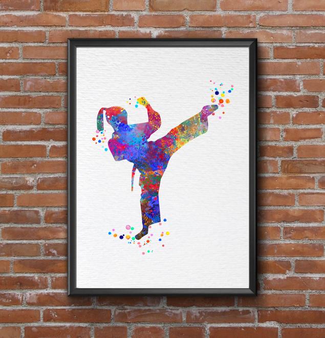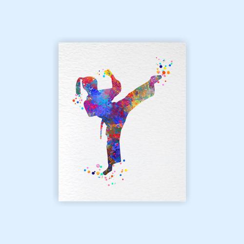 Dignovel Studios Unframed Karate Girl Sports Inspirational Watercolor Art Print Wall Art Poster Home Decor Hanging DN544