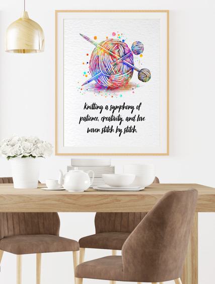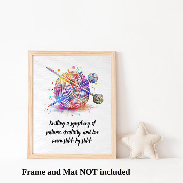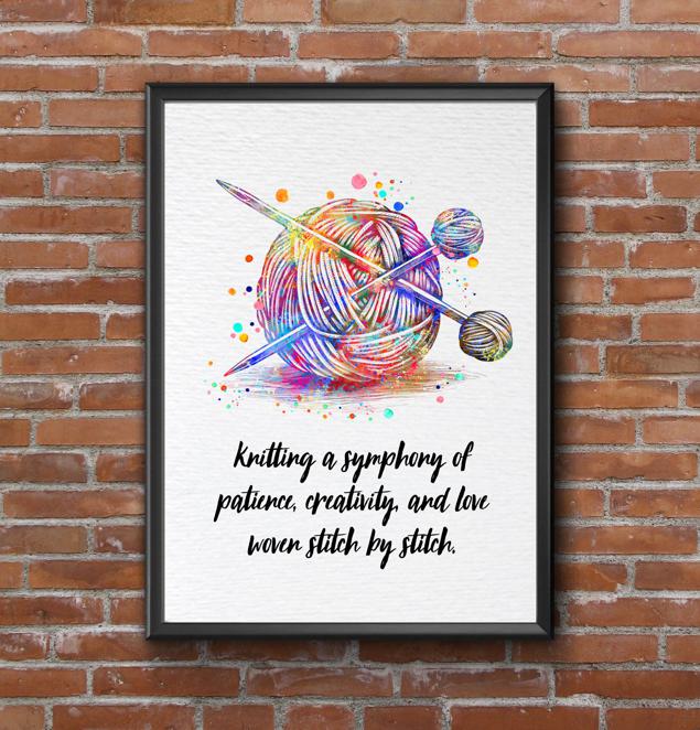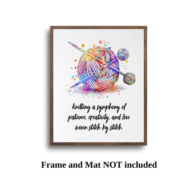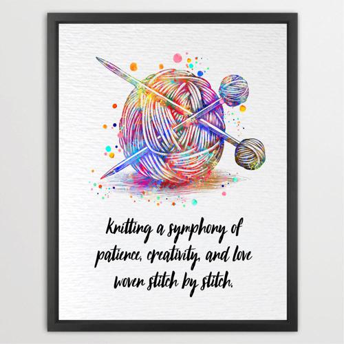Dignovel Studios Unframed Knitting Art Watercolor Print Wall Art Knitted Woman Sewing Room Watercolor Art Print Wall Art Poster Home Decor Hanging DN901