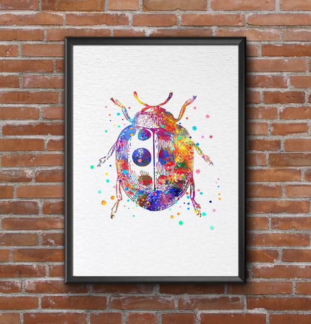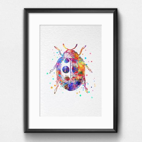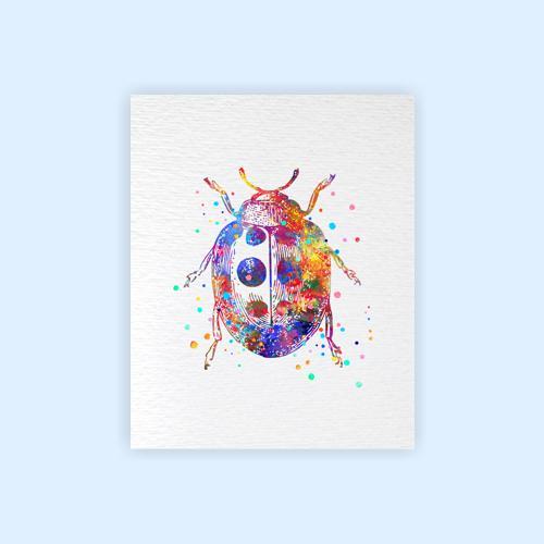 Dignovel Studios Unframed Ladybird Ladybug Animals Insect Symbol of Good Luck Nature Peace Love Watercolor Art Print Wall Art Poster Home Decor Hanging DN720