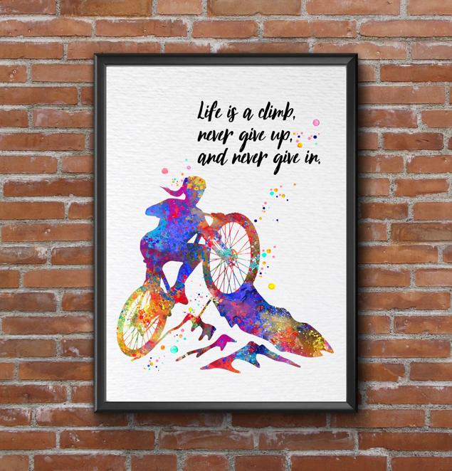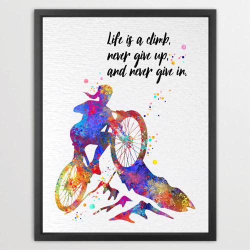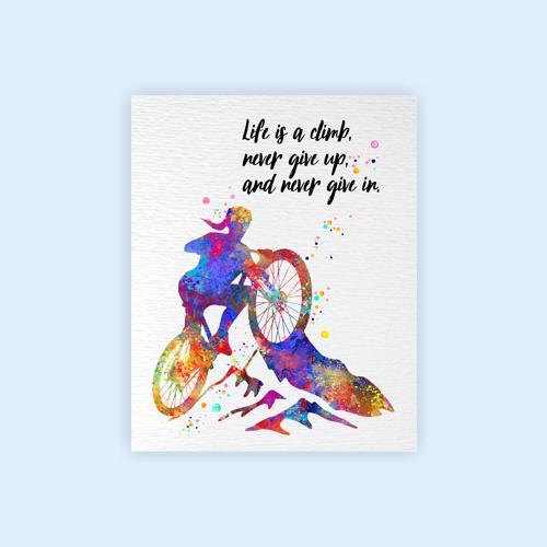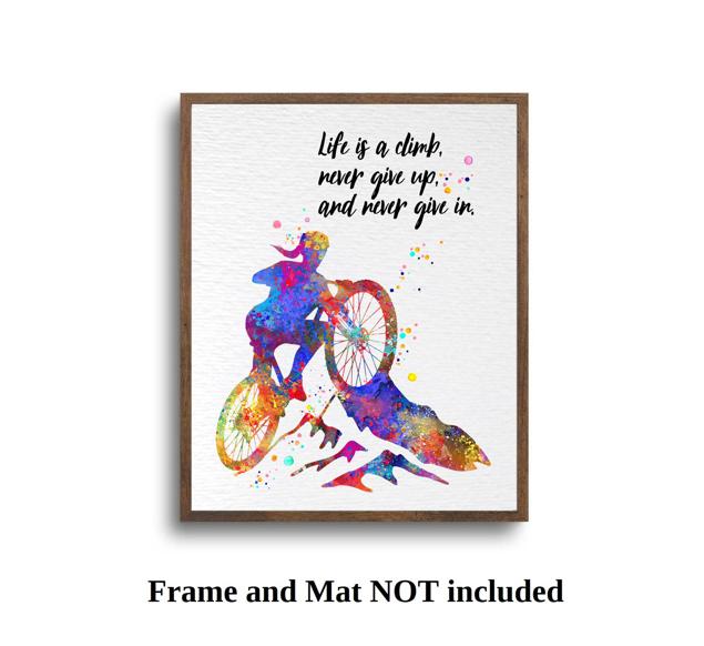 Dignovel Studios Unframed Mountain Bike Hiking Life is A Climb Never Give Up Woman Girl Inspirational Watercolor Art Print Wall Art Poster Home Decor Hanging DN619