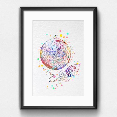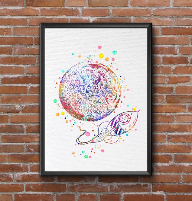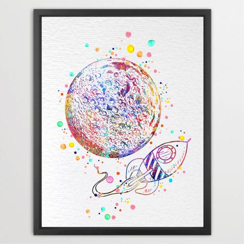 Dignovel Studios Unframed Retro Space Exploration Space Shuttle Ship Moon Landing Nursery Watercolor Kids Room Watercolor Art Print Wall Art Poster Home Decor Hanging DN764