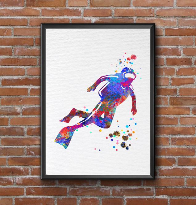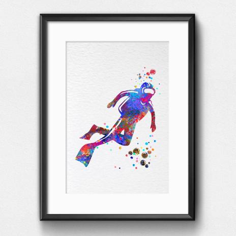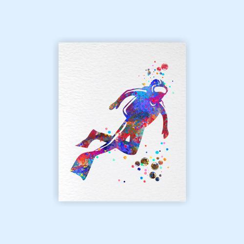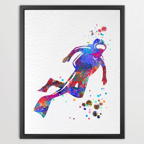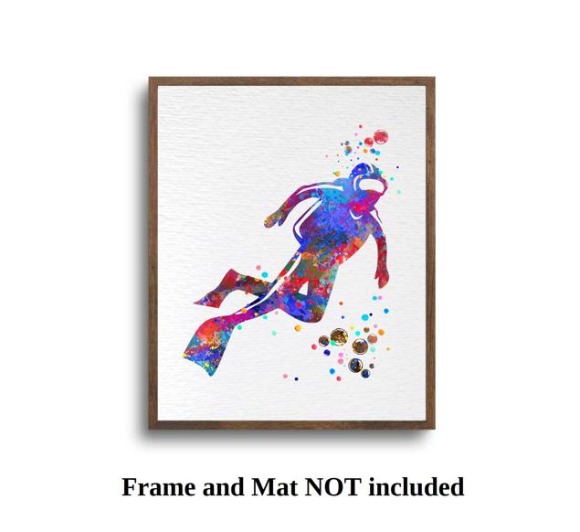 Dignovel Studios Unframed Scuba Diving Sports Ocean Water Outdoors Health Fitness Watercolor Art Print Wall Art Poster Home Decor Hanging DN579