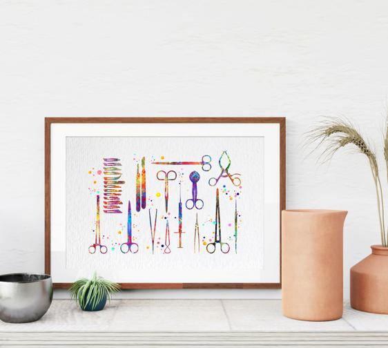 Dignovel Studios Unframed Surgical Tools Illustration Watercolor Art Print Medical Education School Wall Art Medical Science Art Clinic Watercolor Art Print Wall Art Poster Home Decor Hanging DN909
