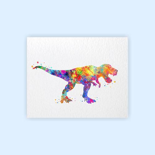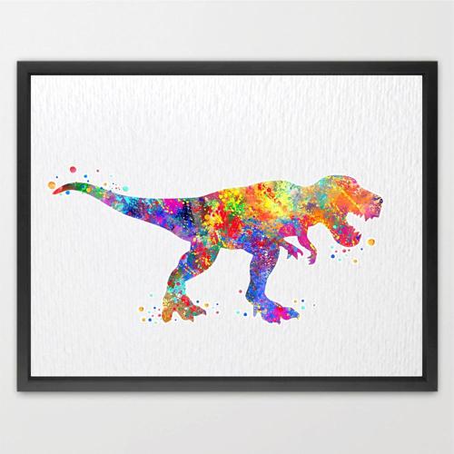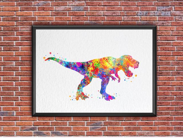 Dignovel Studios Unframed Trex Dinosaur Print Watercolor Painting Print For Kids Children's Nursery Decor Home Decor N109 Watercolor Art Print Wall Art Poster Home Decor Hanging DN109