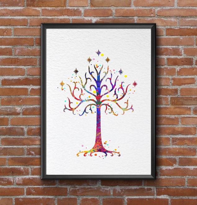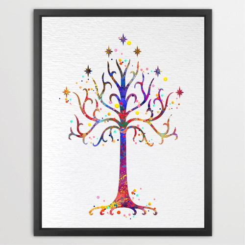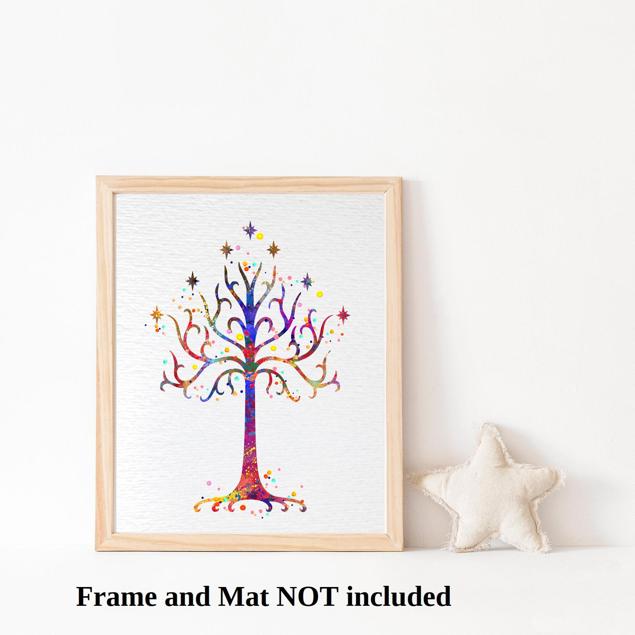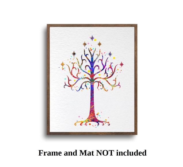 Dignovel Studios Unframed White Tree of Gondor LOTR Watercolor Print Poster Decor Geek Poster N195 Watercolor Art Print Wall Art Poster Home Decor Hanging DN195